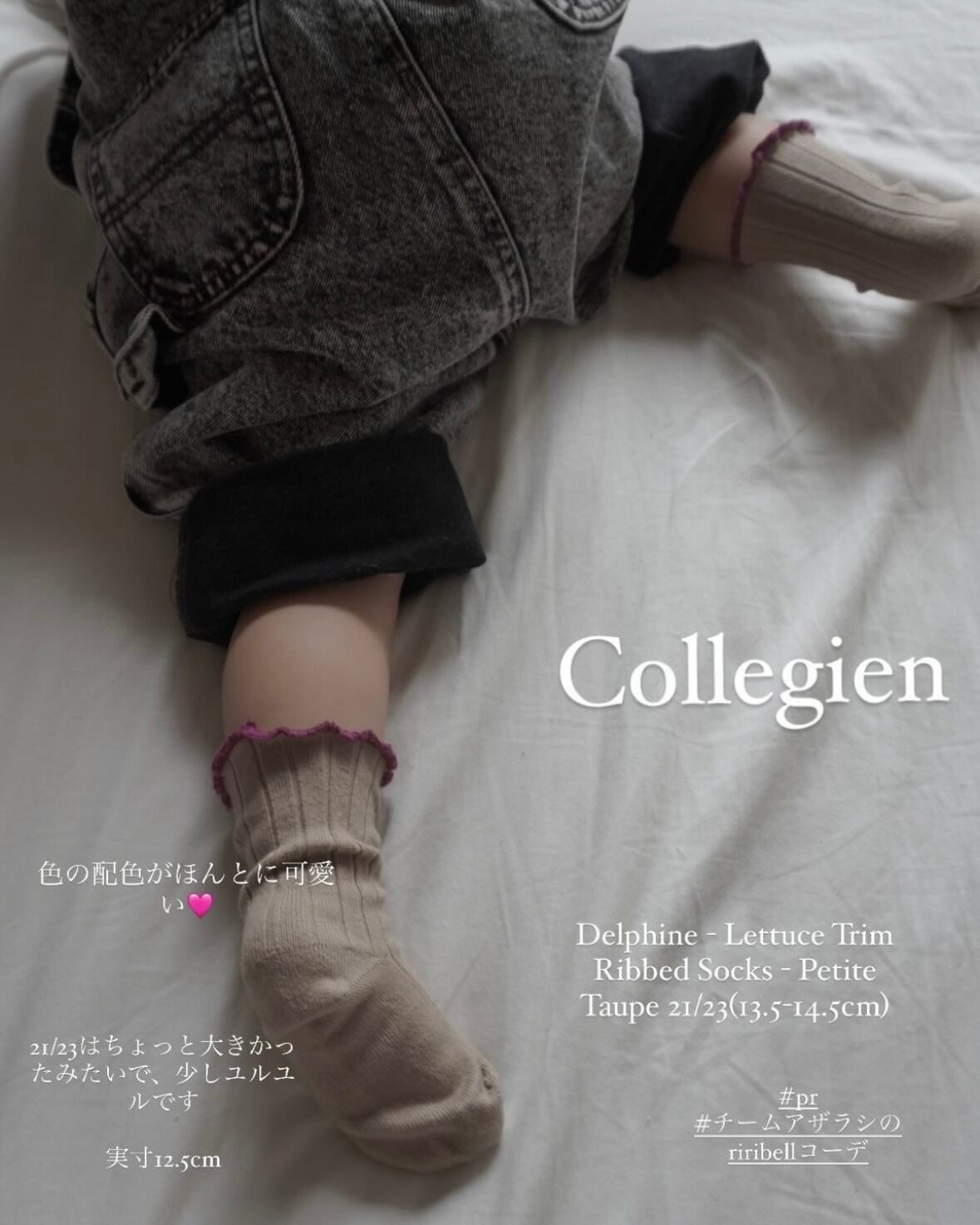 華奢なメロウが可愛いCollegienの人気デザインのソックス。落ち着いたカラーと甘くなりすぎないデザインなので男の子にも女の子にも人気のアイテムです。大人サイズもご用意しておりますので、ぜひお子様とお揃いでいかがでしょうか。