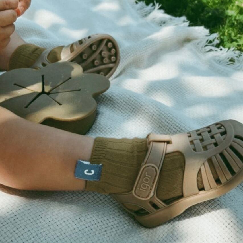 Collegienの「C」のタグが可愛いショートリブソックス 。タグと靴下のコントラストが特徴的です。非常に柔らかさのあるリブ生地は完璧なフィット感を生み出しています。かかと部分は補強されており、縫い目は足の甲にあるのもお子様が着用しやすい嬉しいポイントです。